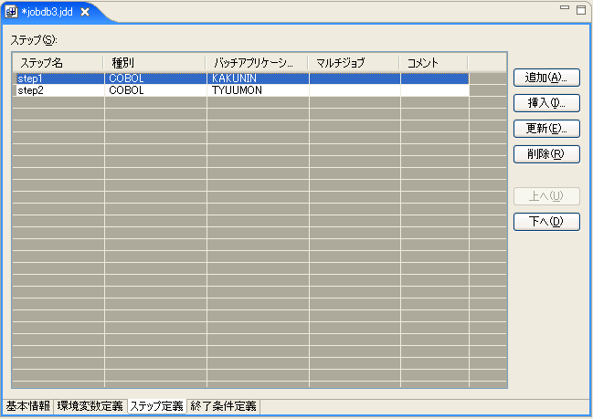 バッチジョブ定義“jobdb3.jdd”を開きます。