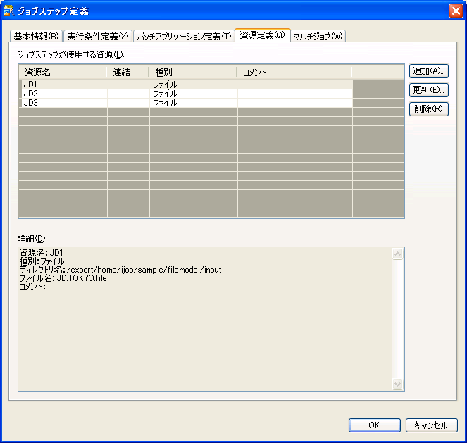 資源名“JD1”を選択し、[更新]ボタンをクリックします。