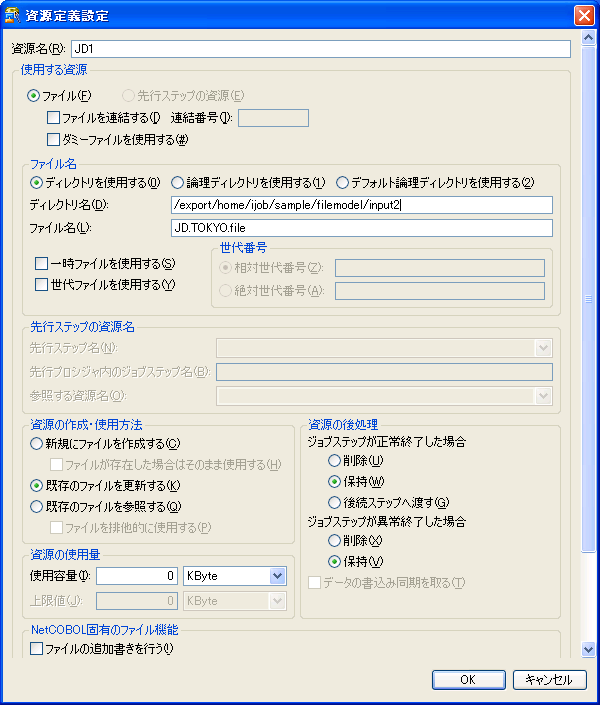 ジョブステップダイアログの[資源定義]タグをクリックします。