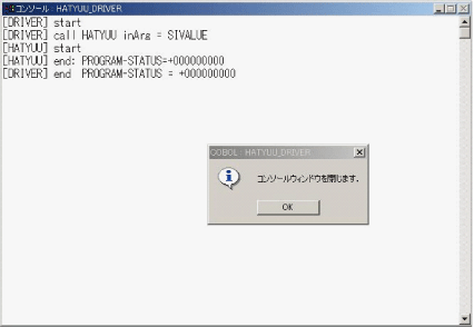 “バッチファイルの作成(HATYUU)”で作成したバッチファイルを使用してCOBOLのバッチアプリケーション(HATYUU)を実行します。