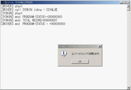 COBOLのバッチアプリケーションの実行結果確認を行います。“COBOLのバッチアプリケーションの実行(SYOHIN) ”でCOBOLのバッチアプリケーションを実行すると以下のような画面が出力されます。出力結果が同じであることを確認してください。