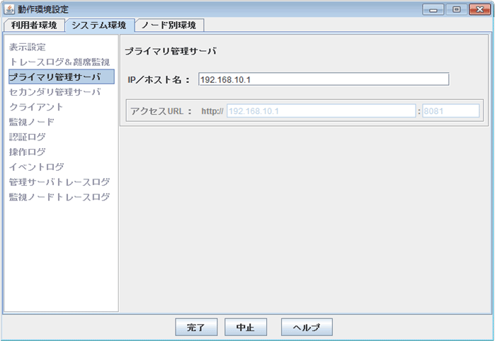 図4.6 システム環境(プライマリ管理サーバ)画面