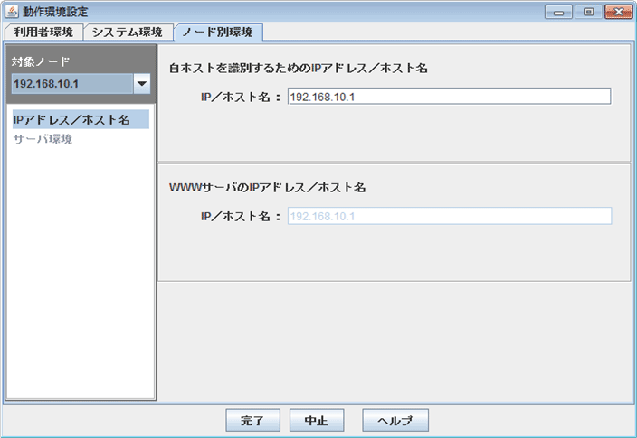 図4.16 ノード別環境(IPアドレス/ホスト名)画面
