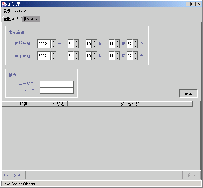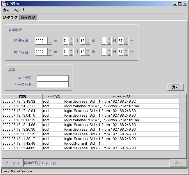 図5.4 ログ表示画面(認証ログ表示)