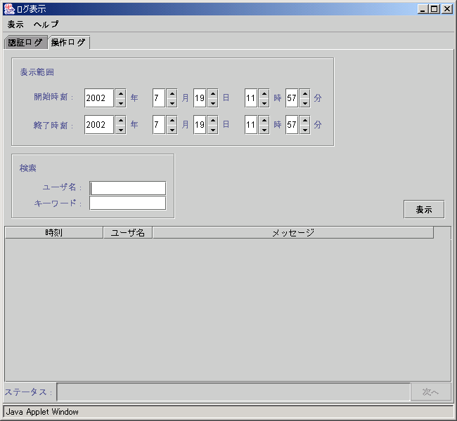 図5.6 ログ表示画面(操作ログ表示)