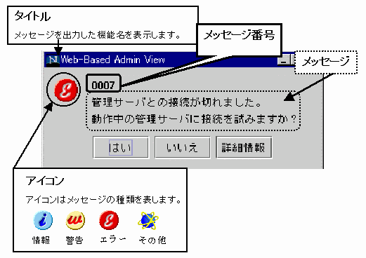 Web-Based Admin Viewでは、以下のようなメッセージダイアログが表示されます。