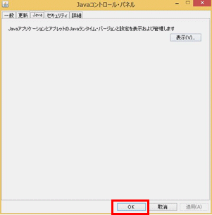 Javaコントロール・パネル画面が表示されますので「OK」ボタンを押下してください。