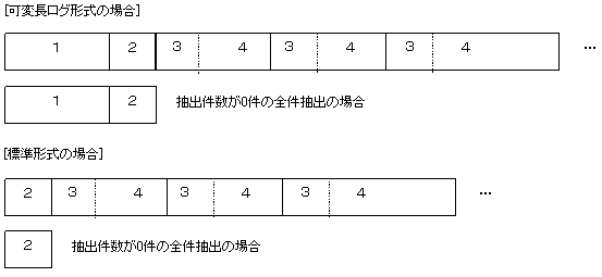 図は1つのレコードを表したもので、ファイル内には、異なる長さのレコードが連続した形で格納されます。抽出定義の差分ログ形式(LOGTYPE)が標準形式(NORMAL)の場合も、可変長ログ形式(LITTLE)の場合もどちらも同じ形式になります。
