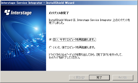 [はい、今すぐコンピュータを再起動します。]、または[いいえ、後でコンピュータを再起動します。]を選択し[完了]ボタンをクリックして終了してください。