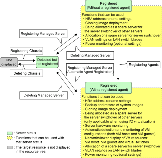 To register a blade server (PRIMERGY BX series), its enclosing chassis must be registered first.