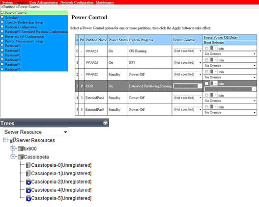 If the manager is installed on one of those partitions, this partition will be shown as: [chassis_name-partition_number[Admin Server]].