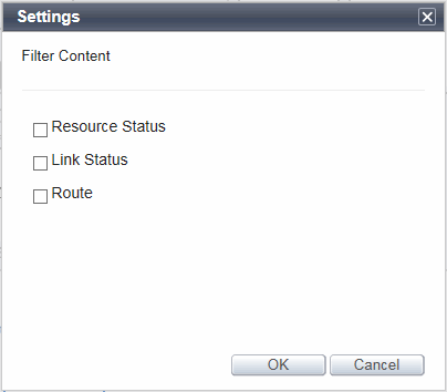 Filtering of the utility panel (custom view) of the NetworkViewer enables display of only the resources that meet the specified conditions.