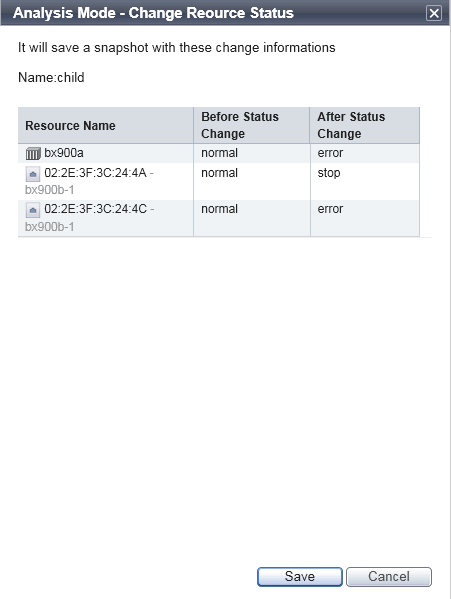 When the [Save] button is clicked, the influence scope data with changed resource statuses is saved as modified failure state data.