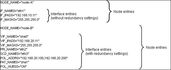 Within a same node entry, it is possible to define interface entries both with and without redundancy settings as long as interface names differ.