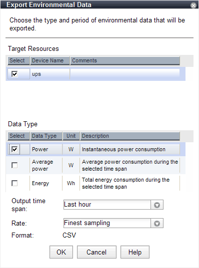 Figure 19.1 [Export Environmental Data (power_monitoring_target)] Dialog
