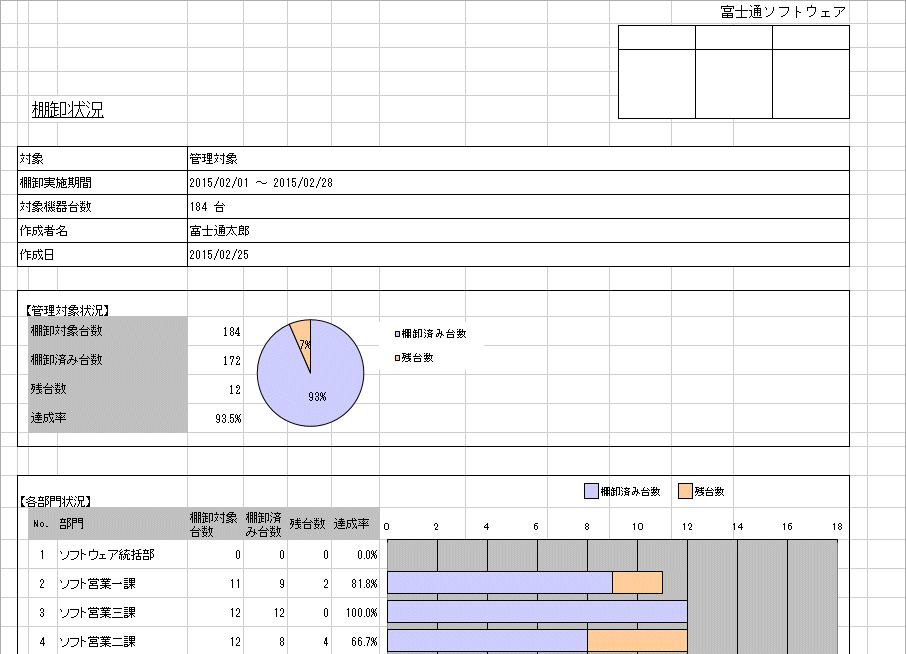 [【管理対象状況】] | [棚卸対象台数] | 対象とした部門または場所での棚卸対象機器の台数です。 |