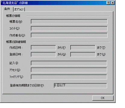 帳票の作成日時の範囲が、半角文字で「yyyy/mm/dd」または「yyyy/mm/dd hh:mm」の形式が表示されます。