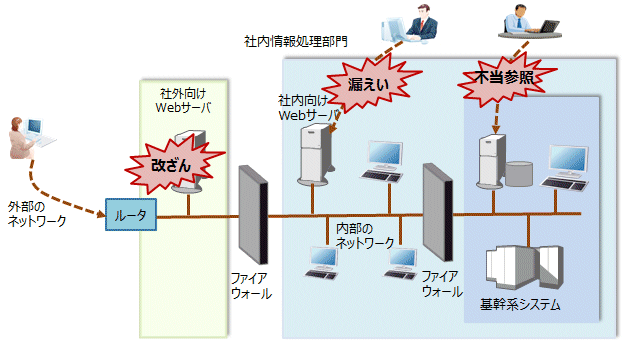 セキュリティとは、情報の漏えいや改ざん、外部からの攻撃、進入、盗聴といった危険を排除すること、あるいは情報サービスへの不当な妨害を阻止することです。情報システムが社会基盤としての信頼を得るためには、漏えいや改ざんなどによるセキュリティの脅威を事前に防止するためのセキュリティ対策が必須です。