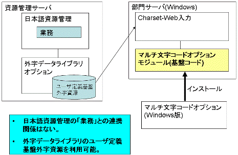 マルチ文字コードオプションを基盤コード運用の形態で導入した、Charset-Web入力のシステム構成は「図2.2 基盤コード運用でのシステム構成」のようになります。