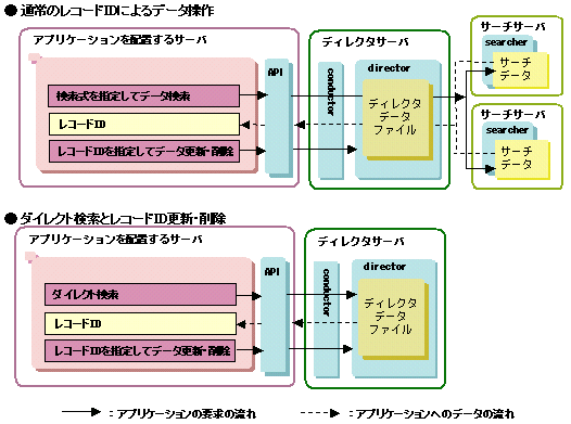 ダイレクト検索とレコードID削除・更新の流れについて以下の図に示します。