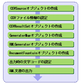 CSVファイルからXML文書に変換する場合の処理手順を、以下に示します。
