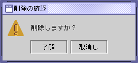 ツールバーから[削除]ボタンをクリックします。またはメニューから[編集]-[削除]を選択します。またはコンテキストメニューから[削除]を選択します。削除を確認するメッセージが表示されます。
