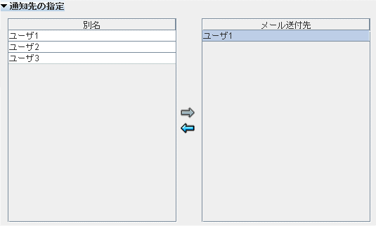 [メールの送付先]に送付先が表示されます。一覧には、登録時の順番で表示されます。バーの部分をクリックすると、一時的に昇順に並び替えることができます。以降、クリックするたびに、一時的に降順、昇順に並び替えることができます。