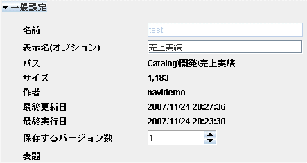 [一般設定]をズームインし、「保存するバージョン数」に保存するバージョン数を設定します。「1」を設定すると、最新の問い合わせ結果のみが保存されます。「2」を設定すると、前回と、最新の問い合わせ結果の2つが問い合わせ結果として保存されます。