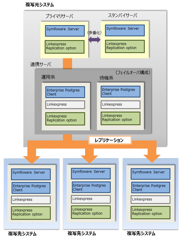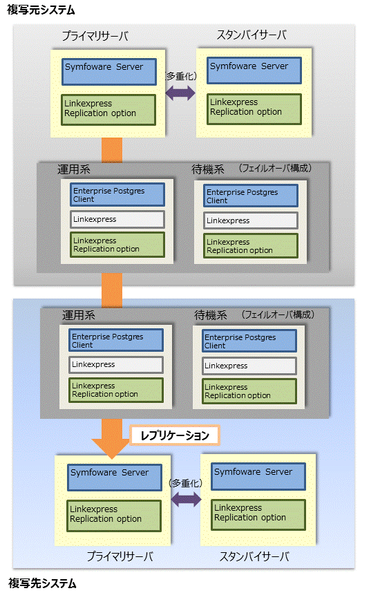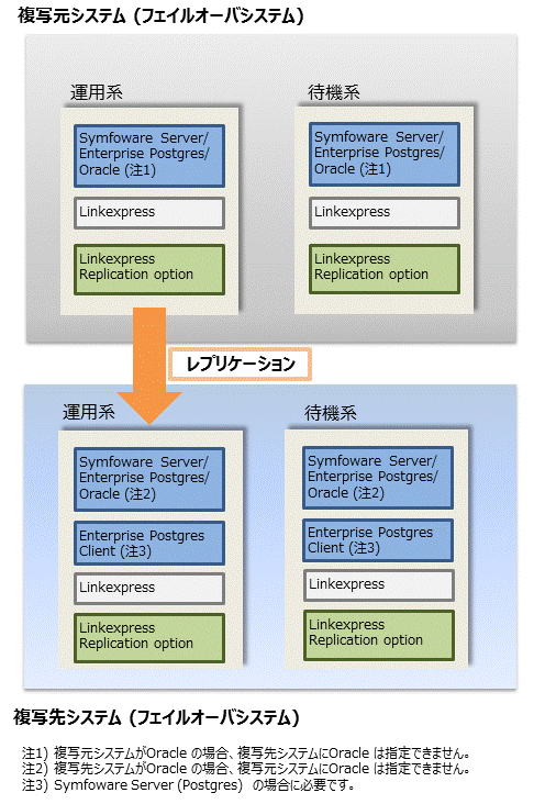 Linkexpress Replication optionでは、フェイルオーバシステムのレプリケーションが可能です。