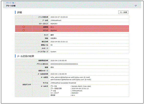 [アラート名]欄でアラート名をクリックすると、[アラート詳細]画面が表示されます。