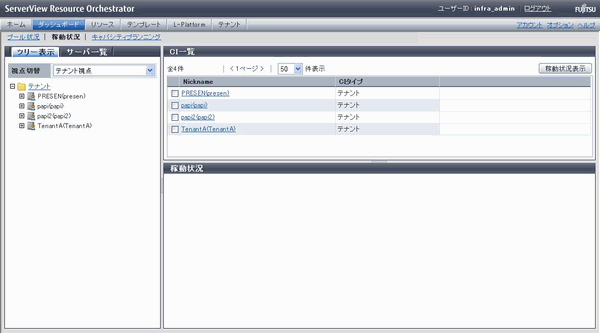 左側のツリーから稼動状況を表示したいL-Platformを選択します。