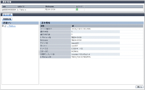 稼動状況画面のCI一覧でNicknameのリンクをクリックすると、別ウィンドウに対象のテナント、L-Platform、またはL-Serverの構成情報が表示されます。