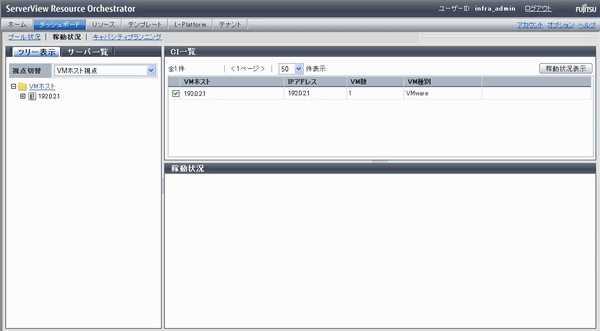 CI一覧からVMホストを選択し、[稼動状況表示]ボタンをクリックします。