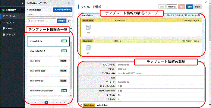 メニューから[テンプレート]を選択すると、[L-Platformテンプレート]画面が表示されます。