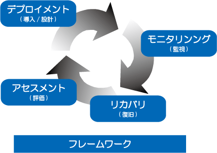 運用フェーズに入ってからのIT資源や業務の稼働状況、性能などを監視するフェーズです。IT資源の稼働監視、異常監視、性能監視を行い業務が正しく稼働していることを監視します。