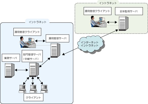 Systemwalker Centric Managerの主な制限値および推奨値について説明します。構成図を以下に示します。
