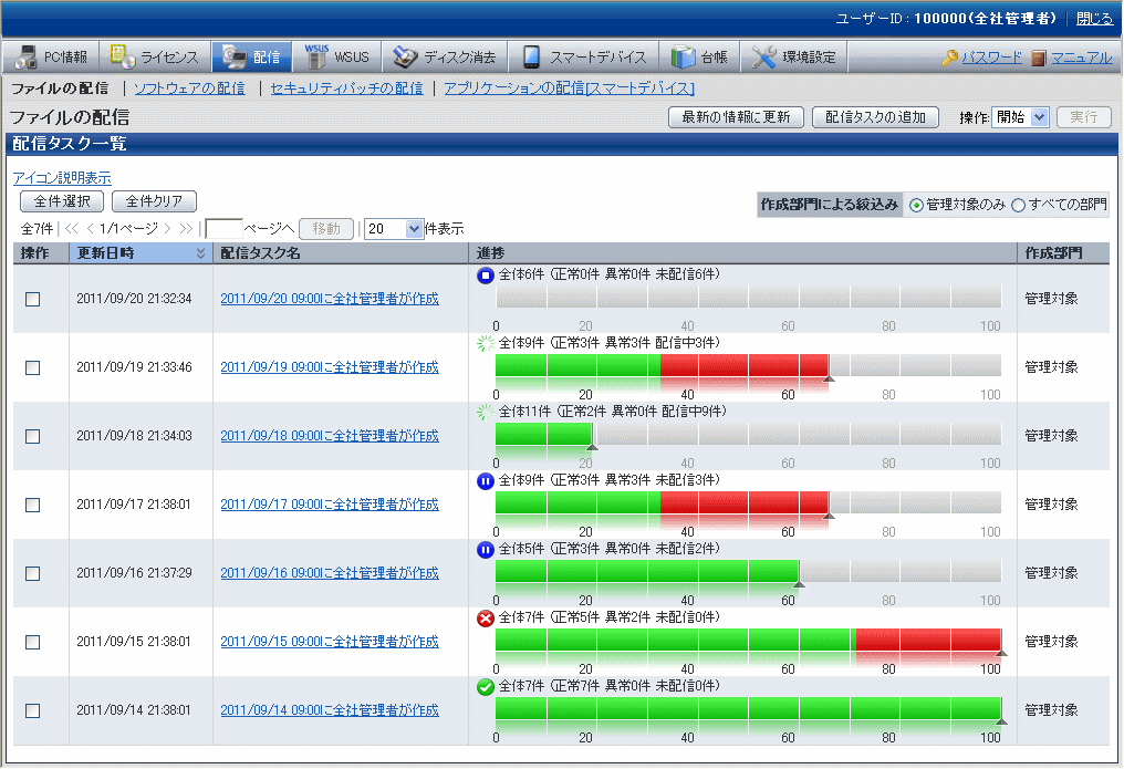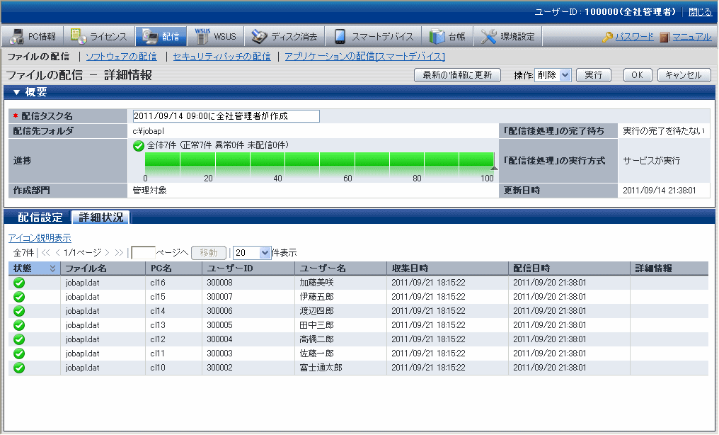 配信した結果は、[ファイルの配信]の初画面で確認できます。