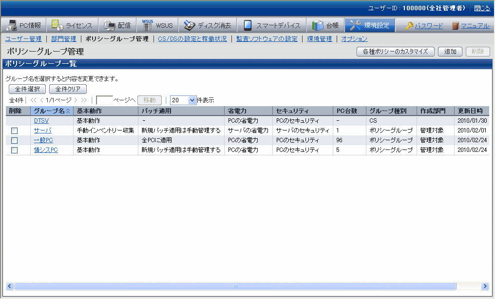 ポリシーグループ管理