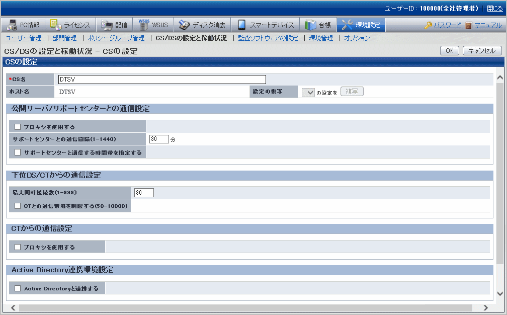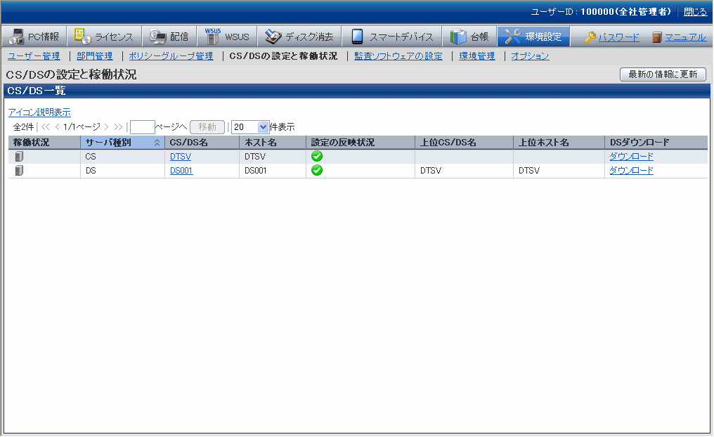 CS/DSの稼働状況、およびCS/DSそれぞれの通信設定等を行う機能です。