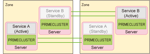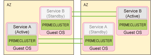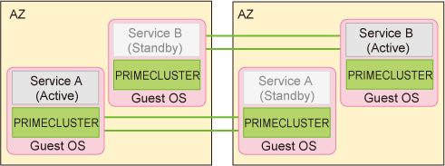 By installing PRIMECLUSTER into the guest OS, you can immediately switch the guest OS when an error occurs in applications or in OS.