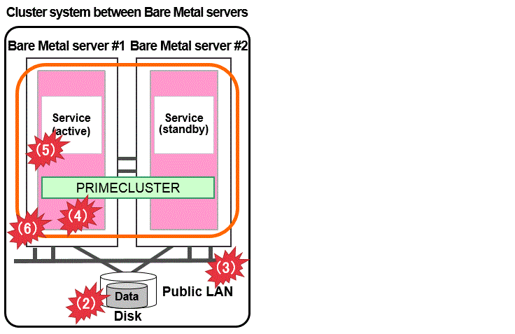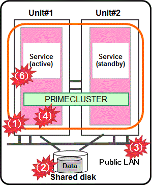 Combining with the volume management function (GDS), the system detects an error of a disk access (monitored by the Gds resource), and the service is switched to the standby system when the disk cannot be accessed.