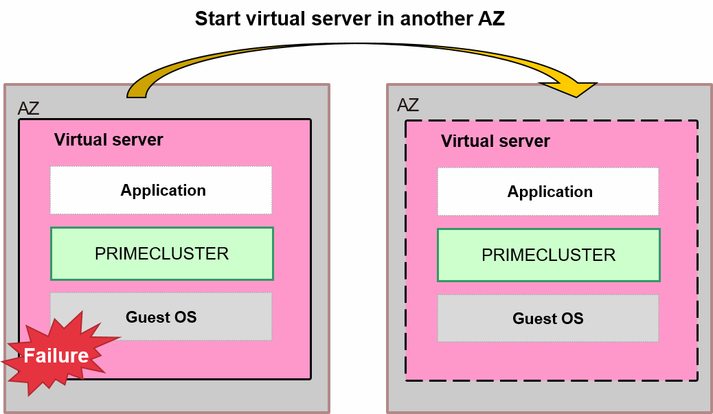 By linking RMS, which is a module of PRIMECLUSTER, with the services provided by the public cloud, such as serverless infrastructure and resource monitor, the virtual server can be switched not only in the case of an abnormality of the virtual server that can be switched by the HA function provided by the public cloud as standard, but also in the case of an abnormal application or availability zone failure, and the availability of the application can be improved.