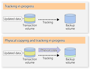 If tracking processing is terminated, all data in the transaction volume is physically copied by the next differential snapshot high-speed backup.