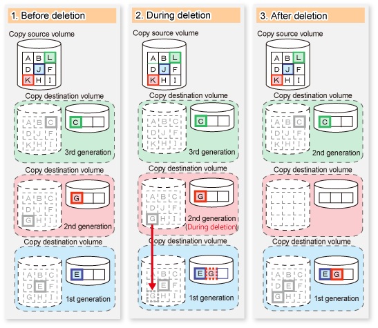*1: Cannot be deleted if the copy ratio of the snap generation to be deleted is different from the copy ratio of the snap generation prior to it.