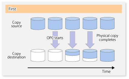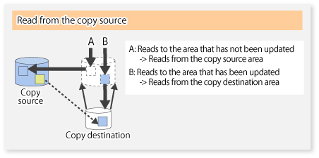 Since the data copy from the source to the destination occurs inside SnapOPC, the access performance of the copy source is sometimes reduced, as well as the access performance of the copy destination.