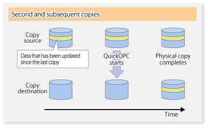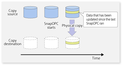 SnapOPC is a function that enables only data that has been updated in the copy source disk after a certain point in time (a logical copy) to be copied to the destination disk.