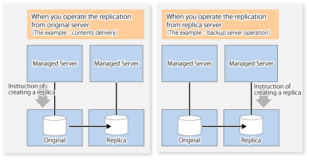 In this manual, a Managed Server used to perform replication is called the operational server. An original server or replica server is specified as the operational server.