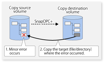 It is not possible to perform restoration using replication if the ETERNUS Disk storage system does not support SnapOPC+ restoration. If restoration is required, copy the data from the copy destination volume manually.
