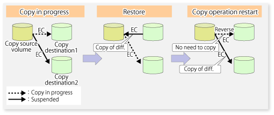 Additionally, it is also possible to execute restore without cancelling other copy jobs in operations that match multiple copy jobs. Therefore, there is no need for overall copy after restore, so operations can be restarted with the load on ETERNUS Disk storage system kept to a minimum.