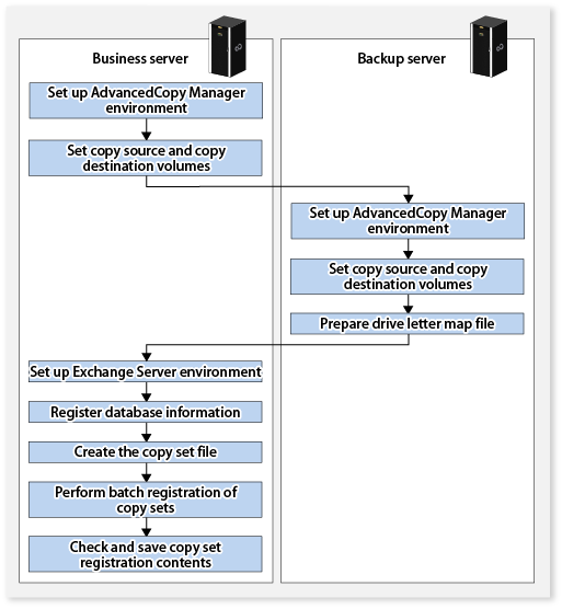 Refer to the Installation and Setup Guide for details of installing AdvancedCopy Manager. In order to use this function, the AdvancedCopy Manager's agent must be installed in a Microsoft Windows Server 2012 or later 64bit environment at the business server and the backup server.